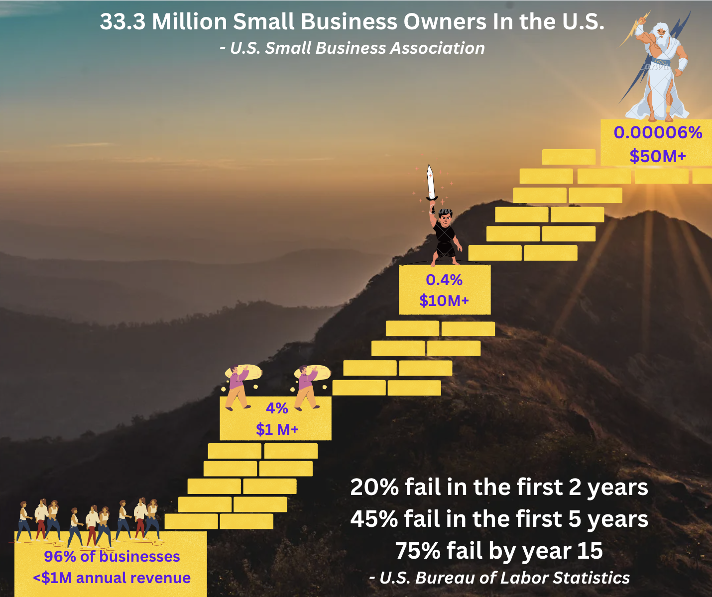 The average small business in the US only generates $55K in annual revenue. This is not enough to support yourself, your family, let alone to build a team to help your business grow.